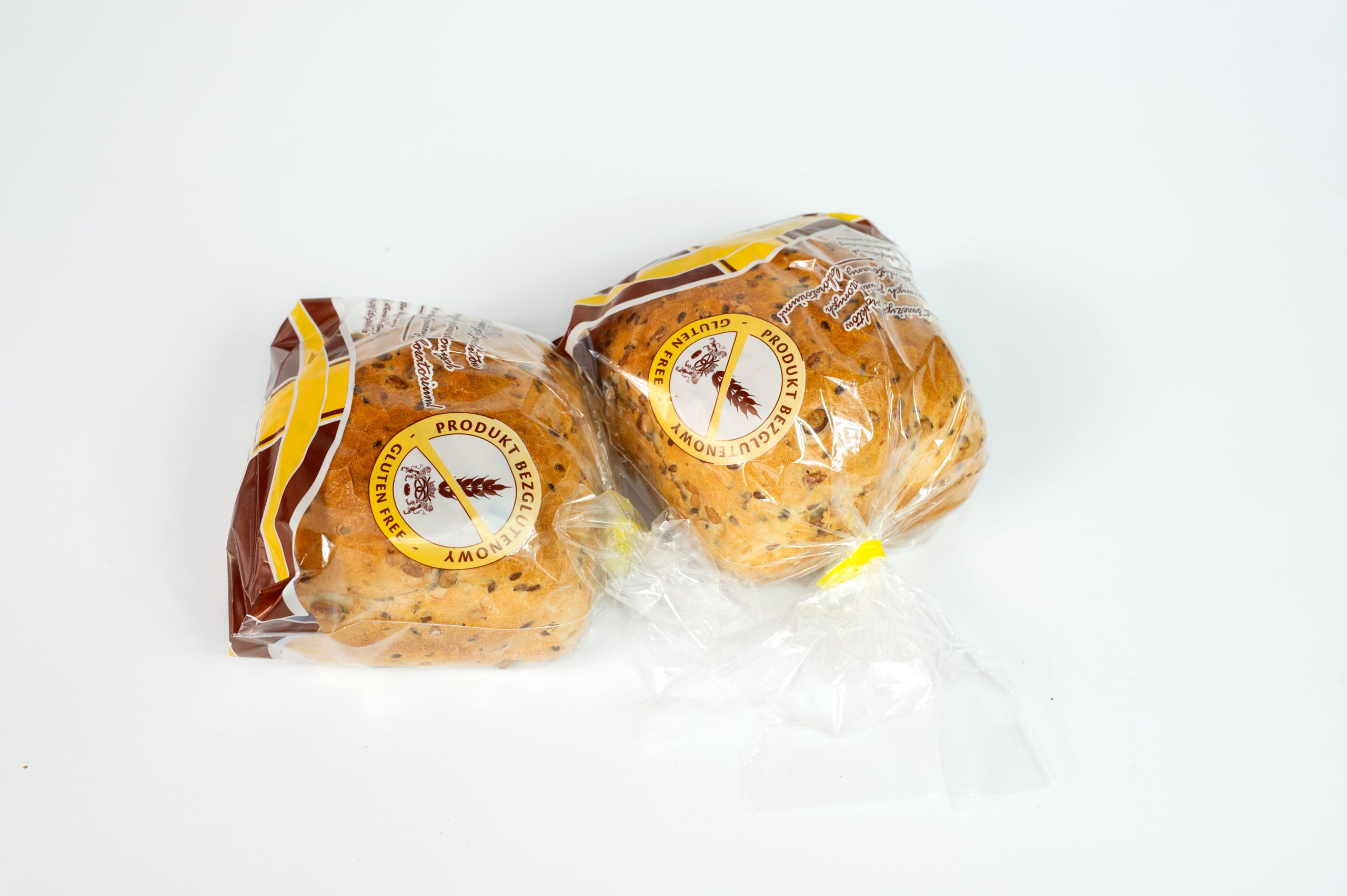 Pieczywo wypieczone ze skrobi kukurydzianej, mąki ryżowej, skrobi pszennej bezglutenowej i mąki kukurydzianej, z dodatkiem ziaren słonecznika, lnu i soi.